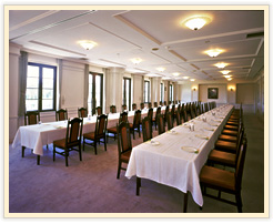 重厚なインテリアとゆとりの空間を兼ね備えるコンペルームです。