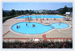 夏の7月から8月末日までの2ヶ月間営業をしております。25m、7コースの本格的プールと幼児用プールをご用意しております。プールサイドには常設のパラソル、デッキチェア。お子様の為に、数種の浮き輪など遊びグッズもご用意しております。水質など万全の衛生管理を行っておりますのでご安心の上、ご遊泳下さい。尚、プールサイドにはお食事ができるスペースと焼肉処オリムピック亭がございます。